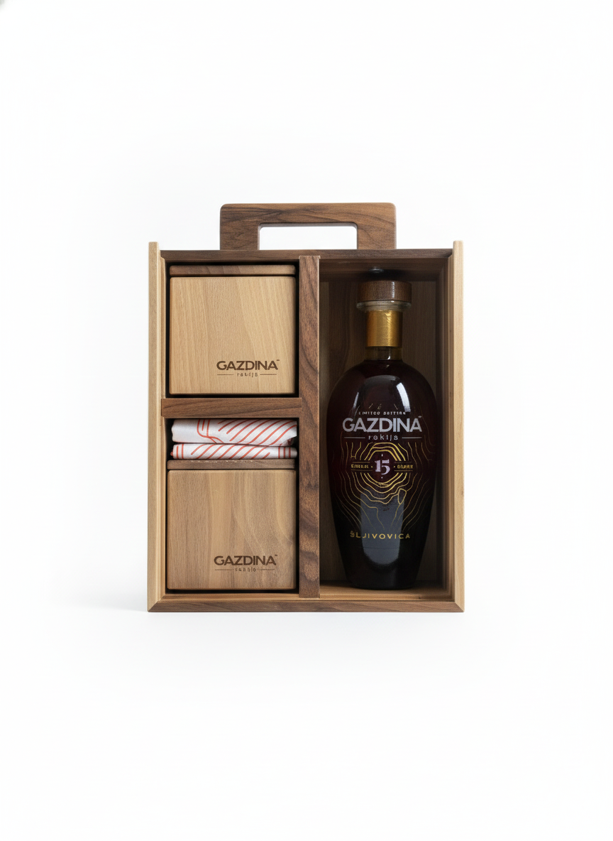 GAZDINA 15 je kruna višedecenijskog umijeća i poštovanja prema vremenu. Više od petnaest godina odležavala je u hrastovim buradima, polako gradeći svoj prepoznatljiv karakter, bez žurbe, bez kompromisa. Nastala od šljive požegače, sorte koju vrijeme čini još rjeđom i dragocjenijom, ova šljivovica donosi dubinu mirisa i slojevit ukus koji se razvija gutljaj po gutljaj.