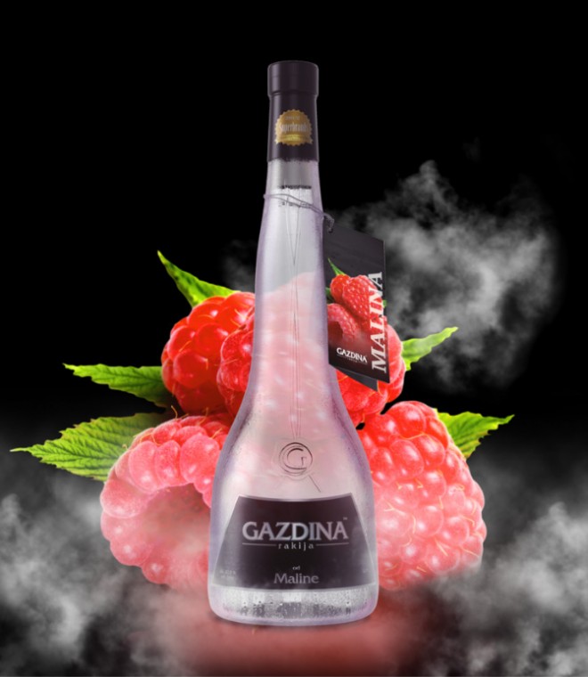 Rakija od maline je voćna rakija proizvedena od pažljivo biranih plodova ovog aromatičnog jagodičastog voća iz porodice ruža. Poseban tehnološki postupak, spontani proces fermentacije i pomno praćen proces destilacije sačuvao je izvanrednu aromu maline i njen prepoznatljiv miris i ukus. Luksuzan buke i netaknuta priroda maline očaraće i najzahtjevnije.